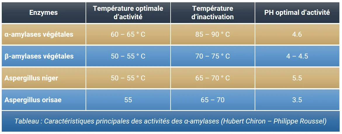 Rappel des températures d’activité de l’amylase fongique.